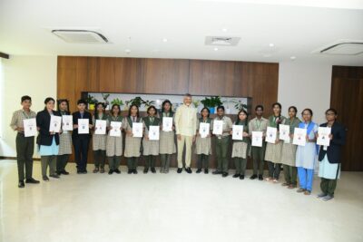 అమరావతి (న్యూస్ వెలుగు): జీఎస్టీ సంస్కరణలపై రాష్ట్ర ప్రభుత్వం ప్రతిష్టాత్మకంగా నిర్వహించిన సూపర్ జీఎస్టీ-సూపర్ సేవింగ్స్ ప్రచారంలో భాగంగా విద్యార్థులకు నిర్వహించిన పోటీల్లో విజేతలుగా నిలిచిన 13 ఉమ్మడి జిల్లాలకు చెందిన 17 మంది విద్యార్థినీ విద్యార్థులు ముఖ్యమంత్రి నారా చంద్రబాబునాయుడు ను శుక్రవారం సచివాలయంలో కలిశారు. ముఖ్యమంత్రి విజేతలను అభినందించి వారికి ప్రశంసా పత్రాలను అందించారు.