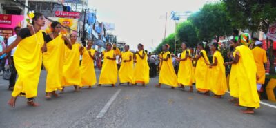 విజయవాడ న్యూస్ వెలుగు : విజయవాడ ఉత్సవ్ దసరా సాంస్కృతిక సంబరాల్లో భాగంగా ఇందిరా గాంధీ స్టేడియం నుంచి బెంజ్ సర్కిల్ వరకూ కార్నివాల్ వాక్, సాంస్కృతిక ప్రదర్శనలను జెండా ఊపి ముఖ్యమంత్రి చంద్రబాబు ప్రారంభించారు. డప్పు కళాకారుల ప్రదర్శన, కొమ్ము నృత్యం, పులి వేషాలు ఆకట్టుకున్నాయి. విజయవాడ బందర్ రోడ్డులో ఘనంగా దసరా కార్నివాల్ వాక్. దసరా కార్నివాల్ వాక్లో ప్రత్యేక ఆకర్షణగా అమ్మవారి ఊరేగింపు. 40కి పైగా కళా బృందాలు, 3 వేల మంది కళాకారులతో సంభరాలు అంబరాన్ని అంటాయి.