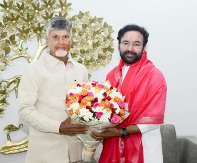 న్యూస్ వెలుగు అమరావతి : రాష్ట్ర పర్యటనలో భాగంగా.. కేంద్ర బొగ్గుగనుల శాఖ మంత్రి జి కిషన్ రెడ్డి.. ముఖ్యమంత్రి నారా చంద్రబాబు నాయుడితో మర్యాపూర్వకంగా సమావేశమయ్యారు. రాష్టంలోని తాజా పరిణామాలు..రాష్ట్ర అభివృద్ధికి కేంద్రం అందిస్తున్న సహకారం పైనా చర్చించారు.